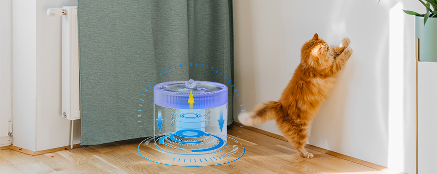 • The fountain's circulating filtration system features a 360° all-around purification design. Water continuously circulates within the machine, effectively removing impurities, odors, and bacteria, ensuring the water quality remains consistently fresh and pure. The 24-hour uninterrupted purification function ensures pets always have access to fresh, healthy water, thereby increasing their water intake and effectively preventing urinary tract problems and dehydration.